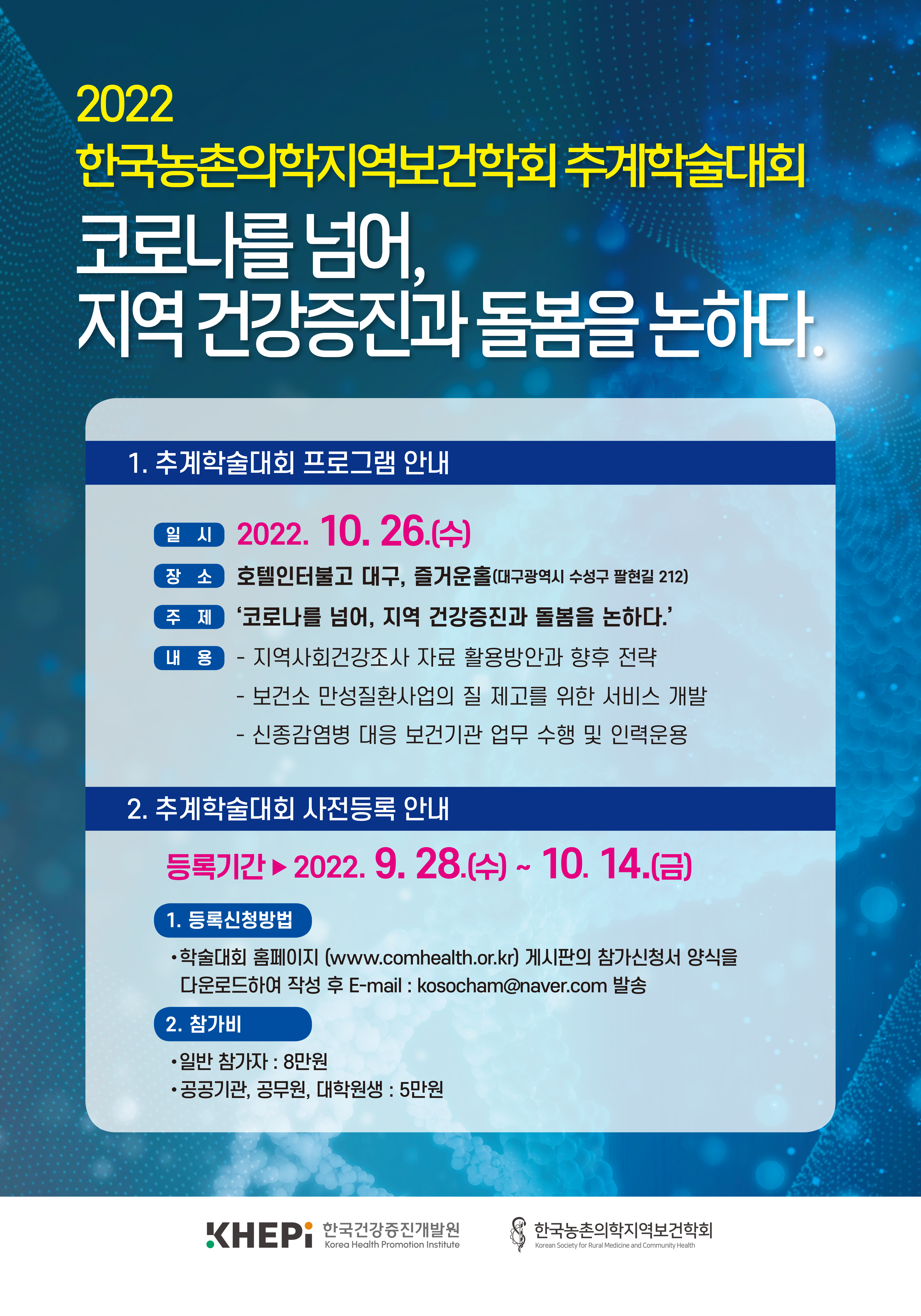 2022년 한국농촌의학지역보건학회 추계학술대회 개최 안내