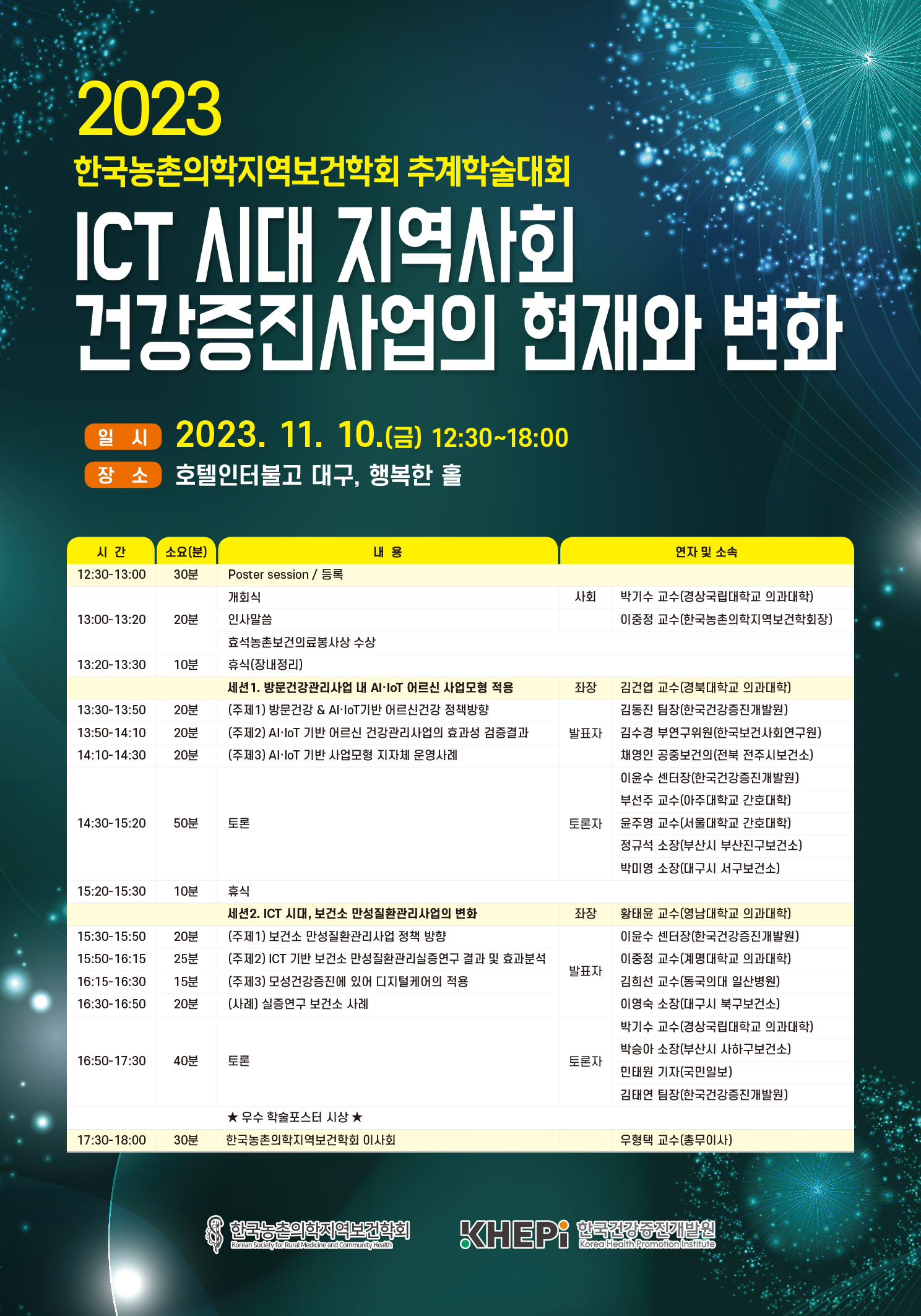 2023년 한국농촌의학지역보건학회 추계학술대회 개최 안내